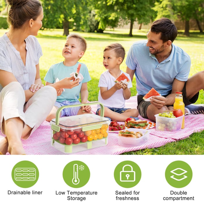 Transparent Freshness:The sets with lids for refrigerator are double-layered design, and large produce saver are equipped with a removable strainer, which makes it easy to rinse and filter the water on the surface of the vegetables, preventing spoilage due to over-soaking and keeping food fresh longe.The kitchen organizer refrigerator holder bins are clear, so you can see what you want without having to take the whole bin out of the fridge. Simplify your kitchen storage and make room for new.Sealing Buckle:In response to customer demand, we have upgraded the lid of the storage box to ensure that each lid can be closed better. The berry container of the refrigerator set is set with a buckle seal around it to form a sealed barrier, easy to open the lid, dust-proof and hygienic, ensuring that the food remains fresh and eliminating all worries about spills or food odors escaping.Fruit Storage Container For Fridge:The fruit containers for fridge keep fresh is made of BPA-free PET and PP plastic, which is durable and reusable. It adopts a portable widened handle design, which is comfortable to hold and has strong load-bearing capacity; the edge of the fresh-keeping box is smooth and delicate to the touch, suitable for most refrigerators, freezers, cabinets, drawers.Space Saving:These refrigerator vegetable containers adopt a stackable design, which is stable and not easy to fall. They will easily fit into each other leaving more space on your kitchen slabs and cabinets, also perfectly stackable to fit in your refrigerator and freezer.Refrigerator fruit container:Measuring 9.8 * 6.7 * 4.7 inches. The large-caliber box body design is easy to clean the inner wall, which is more convenient for the use of ingredients; there are multiple drainage holes evenly distributed at the bottom, which is very suitable for storing various berries, fruits, vegetables, meat, etc.